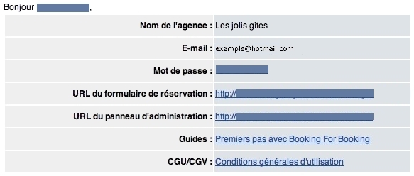 Vous recevrez un mail de confirmation que vous devrez garder précieusement car il contient l'URL d'accès à votre compte Contrôle Résa et les donnés d'authentification.