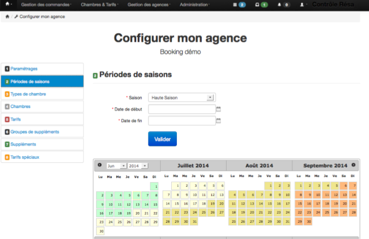 Grâce à son système de paiement en ligne sécurisé, validez la réservation de vos biens (règlement total ou partiel, acompte). Gérez vos tarifs par saison et par type d'hébergement.